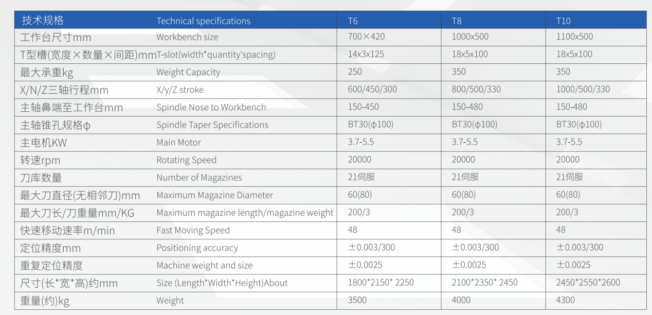 - 加高立柱設計,預留安裝第四、第五軸空間。